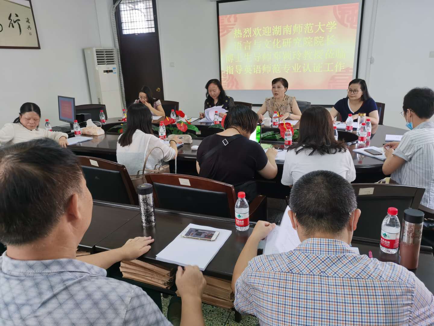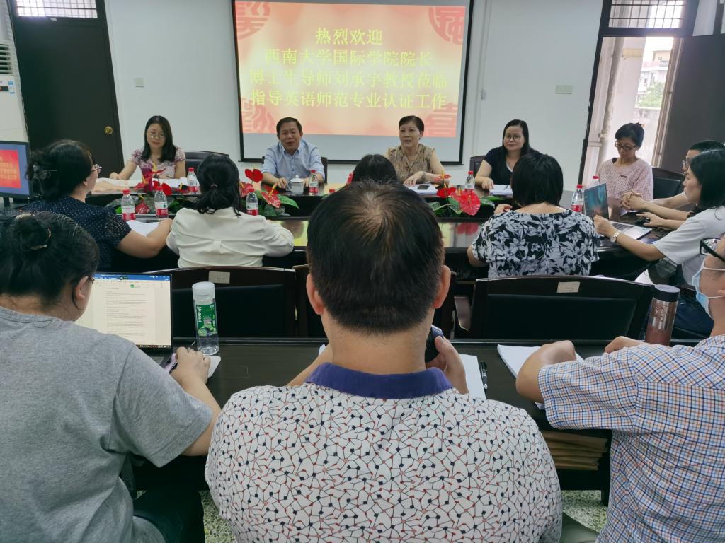 邓颖玲教授和刘承宇教授认证审读了我院英语师范专业的自评报告,并针对每个指标点提出了宝贵的意见和建议。吴玉玲院长对专家的宝贵意见深表感谢,并表示我们会尽快依据专家的意见和建议完善自评报告。