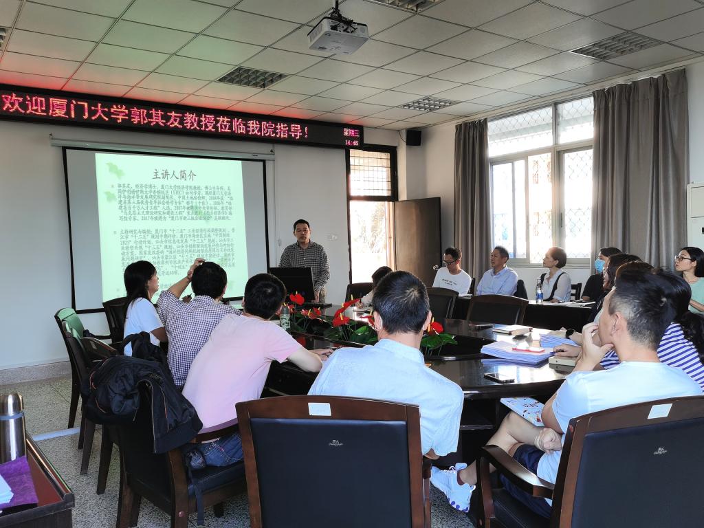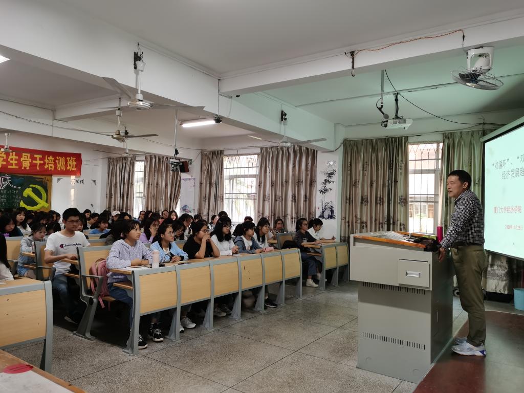 2020年11月25日下午2点40分,厦门大学经济学院经济系博士生导师郭其友教授莅临我院作题为《构建国内大循环、国内国际“双循环”的新发展格局——学习十九届五中全会有关精神》的讲座。讲座由钟惠芸副院长主持,商务英语系全体教师参加。