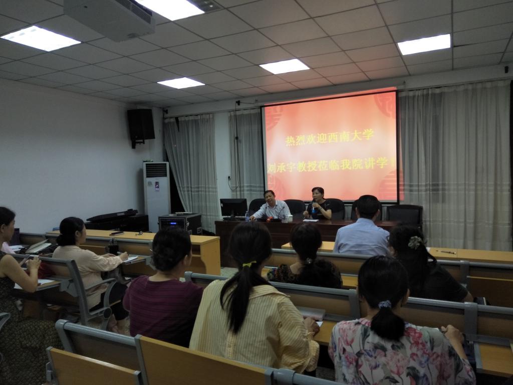 10月10日晚上7点,西南大学yl88858永利官网院长刘承宇教授在综合楼中区504为我院英语师范专业教师们召开了一场题为《“一流学科,一流专业,一流课程”建设背景下的英语师范专业认证》讲座。刘教授首先以我国高校师范教育的概况为背景分析了师范专业认证的意义;其次解读认证实施办法,从理念、体系、程序等几个方面明确认证标准;他以西南大学yl88858永利官网师范专业认证的成功为范例,重点传授了在修订培养方案、优化课程设置等方面的宝贵经验。他提出专业认证不仅需要一个专业长期的积累,更是一个上下同心、全员参与的过程。会上教师们就目前我院师范专业认证准备工作中所遇到的问题积极提问讨论,刘教授风趣幽默的演讲风格和他丰实饱满的经验传授,赢得了多次掌声,也为我院师范专业认证提供了重要的参考依据。