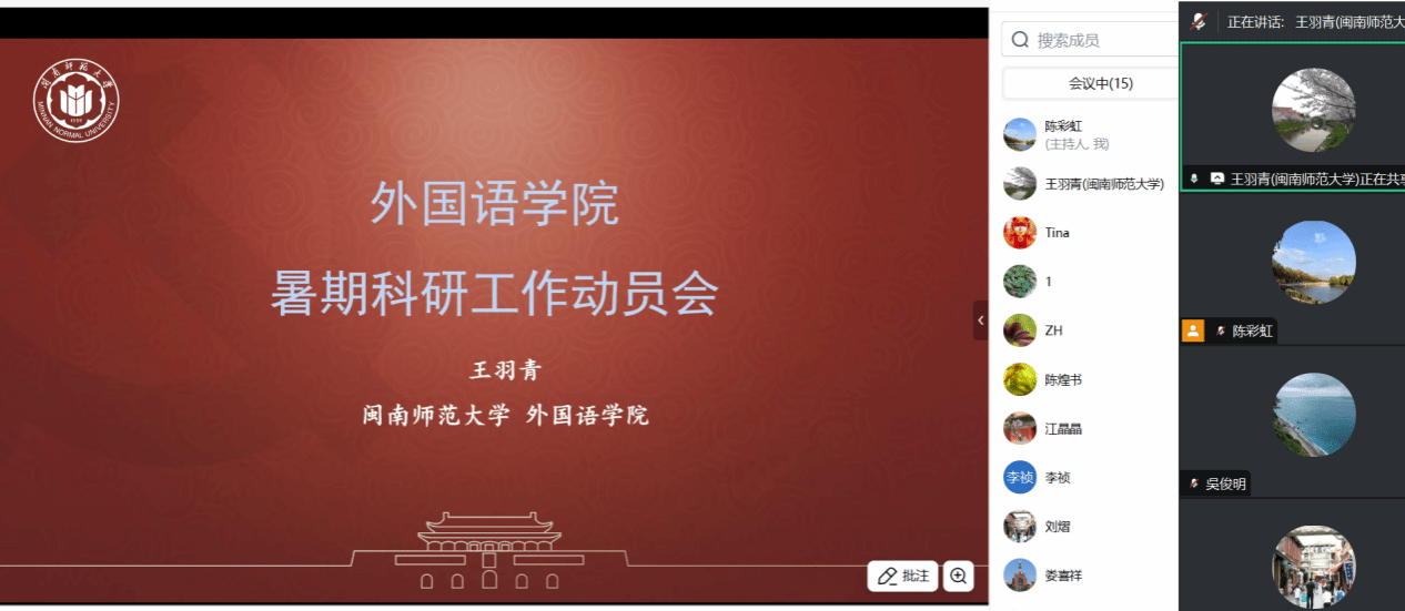 在暑期科研工作动员会上,王羽青副院长以学院年度考核与聘期考核文件精神为切入点,号召老师们以饱满的热情投身于科研工作中。他同时鼓励教师充分利用假期时间,集中精力推进论文撰写、课题研究和项目申报工作,建议合理规划时间,加强团队协作,争取产出高质量科研成果。学院也将尽力为老师们提供必要支持,助力教师科研工作顺利开展。