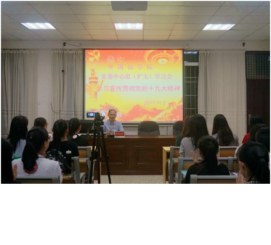 11月2日下午,我院在综合楼中区504会议室组织召开党委中心组(扩大)学习会,专题学习贯彻十九大会议精神。学院党委委员、教工和学生党支部书记、全体教工党员参加了会议。会议由学院党委书记黄伟东主持。