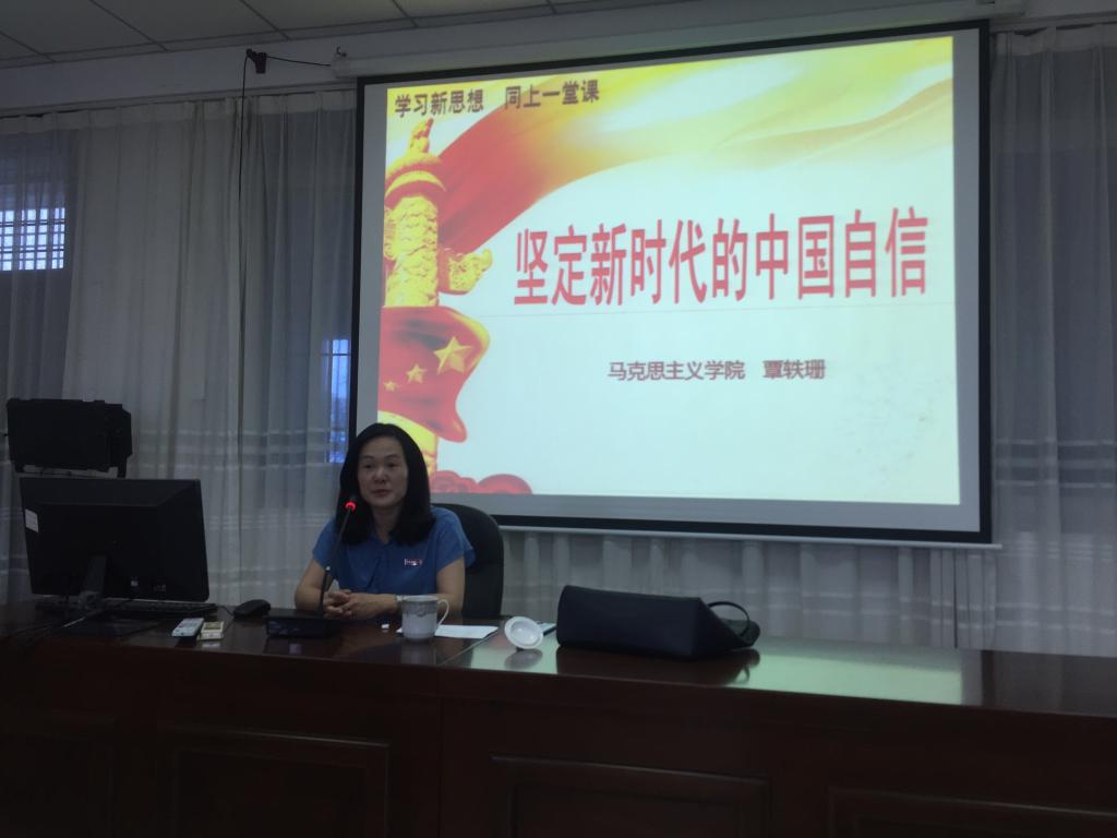 为深入学习贯彻习近平新时代中国特色社会主义思想,学习好贯彻好习近平总书记在北京大学师生座谈会和纪念马克思诞辰200周年大会上的重要讲话精神。6月14日,按照校党委的统一安排部署,我院组织开展了“学习新思想全校师生同上一堂课”活动,邀请马克思主义学院覃轶珊副教授为我院师生授课。院党委书记黄伟东主持活动,院党政领导班子、全体教工党员、辅导员、学生党员代表到场参加活动。