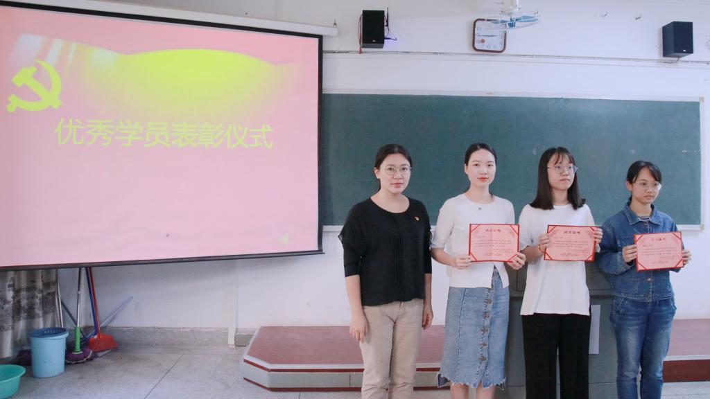 本次结业典礼共分为四项议程。首先,全体成员起立奏唱国歌,表达对中国共产党的崇高敬意和爱国之情。接着,黄丽恋老师宣读yl88858永利官网分党校第十六期入党积极分子培训班结业名单并对顺利结业的同学们表示祝贺。随后,陈慧燕老师对邱若凡、黄丽津、王文铃三位优秀学员进行了表彰。