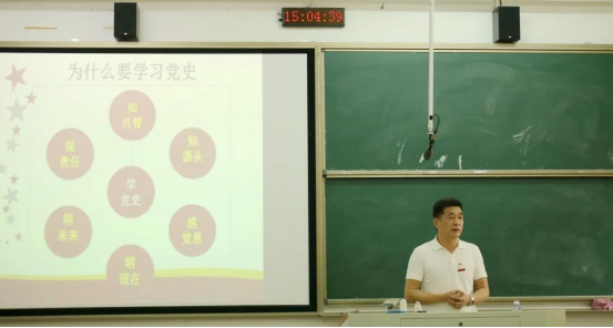 朱兆军同志将党史分成三个阶段介绍:一是从1921年中国共产党成立至1949年中华人民共和国的成立这28年的新民主主义革命时期;二是从1949年至1978年这30年来确立社会主义制度并开始全面建设的艰辛探索时期;三是从1978年至今42年的改革开放、建设中国特色社会主义时期。朱兆军同志结合相关历史事件并联系相关国际时事,对每一个时期都进行一定的说明,生动而有趣地向同学们介绍了党的发展历史。