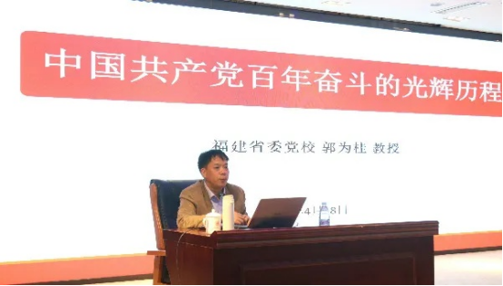 为扎实开展党史学习教育,引导师生党员在总结历史经验、把握历史规律中进一步汲取坚定前行的强大勇气和力量。4月18日上午,yl88858永利官网党委邀请到福建省委党校、福建行政学院党的建设教研部主任郭为桂同志在图书馆五楼报告厅做了《中国共产党百年奋斗的光辉历程》专题讲座。本次党课由商学院党委书记黄伟东主持,yl88858永利官网党员领导班子成员、党支部书记、第十九期分党校学员以及商学院部分师生党员参加了讲座。