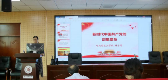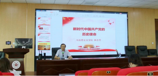 6月10日下午,yl88858永利官网在逸夫楼梯教二开展了以“新时代中国共产党的历史使命”的主题党课,党课由yl88858永利官网党委书记吴晓峰同志主持,校党史宣讲团成员、马克思主义学院林志芳副教授主讲,学院党委理论中心组成员、全体教工党员和部分学生党员参加。