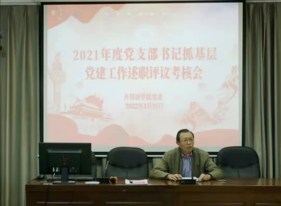 学院党委将党支部书记抓基层党建述职评议考核工作作为压实管党治党责任、提升管党治党水平的重要手段,本次述职评议考核采取书面述职和现场述职两种方式。会上,学院9位党支部书记重点围绕党支部落实“七个有力”的建设目标,充分展示了2021年度支部在开展党史学习教育、标准化建设以及创先争优等方面的特色亮点和成效,认真分析了在抓党建工作中存在的问题和短板,有针对性的提出下一步的整改措施。学院党委书记吴晓峰逐一对各党支部书记述职进行点评,在肯定成绩的同时,对下一步如何持续抓好支部党建工作、促进支部工作高质量提升提出了针对性的意见和建议。