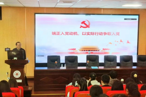 开班式结束后,党委书记吴晓峰同志为学员们带来了“端正入党动机,以实际行动争取入党”主题党课。山高有其脊,树成因其根。吴晓峰书记指出,学员们不仅要争取在组织上入党,更应做到在思想上入党,要在思想上不断端正入党动机,加强对政治理论知识的学习,提高党性修养;在学习上严格要求自己,注重提高专业能力及素质;在实践中践行全心全意为人民服务的宗旨,从身边点滴做起,争做模范先锋。组织上入党一生一次,思想上入党一生一世。全体学员要深刻认识到端正入党动机的重要性,坚定马克思主义信仰,把握时代大势,脚踏实地,敢于担当,充分发挥模范带头作用。