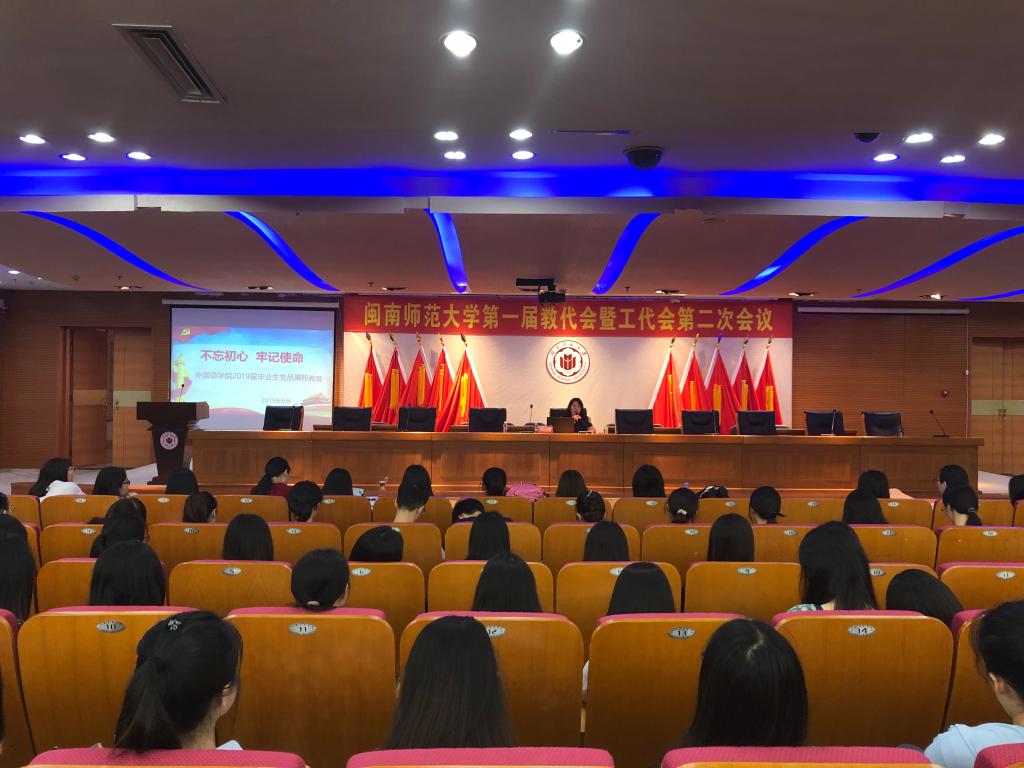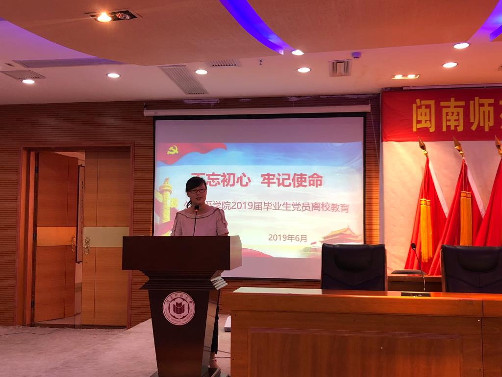 6月20日上午九点,我院在逸夫图书馆五楼报告厅举行主题为“不忘初心,牢记使命”的2019届毕业生党员离校教育。yl88858永利官网党委副书记陈慧燕同志,毕业班辅导员陈晓蕾老师以及全体毕业生党员出席会议。