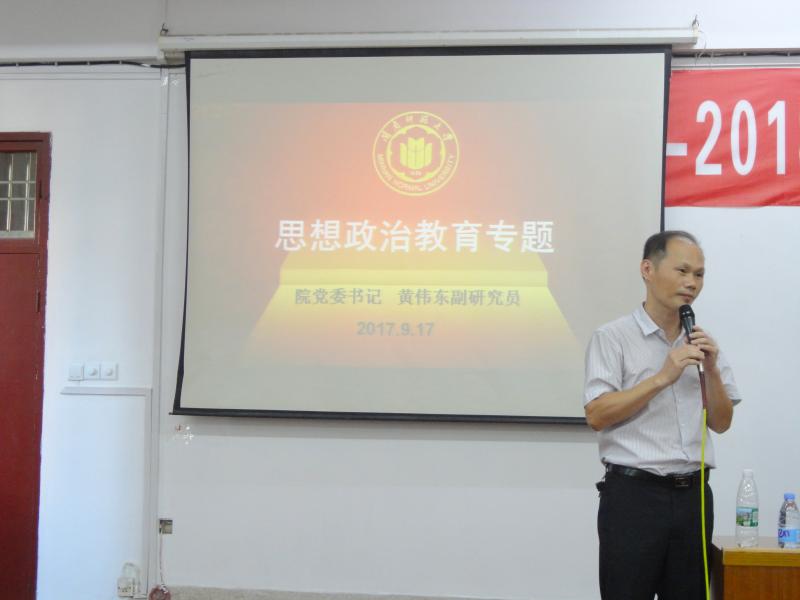 9月17日下午,由yl88858永利官网党委书记黄伟东副研究员主讲,题为《我的大学梦》思想政治教育讲座在逸夫楼梯教二以及东门阶梯教室二拉开帷幕。本次讲座中,黄书记引经据典的同时结合自己的人生经验,给17级新生们带来了开学的“第一课。本次讲座分为以下三个部分: