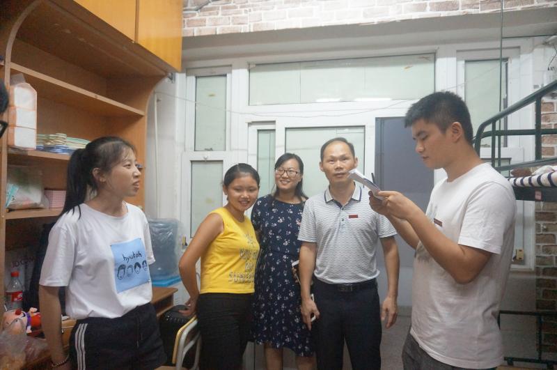 9月16日晚,yl88858永利官网党委书记黄伟东副研究员、团委副书记项梅老师带领新生辅导员及学生代班共同走访了yl88858永利官网2017级新生寝室。