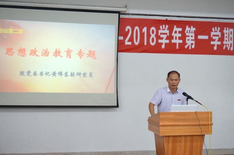 本次研讨会共分为两大部分,五项议程。研讨会在青春朝气的中国共青团团歌中启动。首先,院党委书记黄伟东副研究员为学生干部带来了新学期的团学第一课------思想政治教育专题讲话。黄伟东书记充分肯定了我院一学年的团学工作,强调以思想教育为主线、以学风建设为重点、以课外活动为载体、以评价示范为手段,以指导服务为保障五位一体的团学工作机制。同时,黄书记也指出了当前存在的问题,团学工作仍处于初级阶段,工作过程不够精炼,工作方法较简单,希望学生干部们在新一学年的工作要更加有责任、有担当、有创新,明确工作整体架构,加强干部自身建设,推动我院团学工作向更高阶段发展。最后,黄书记结合习近平总书记7.26讲话内容,指出大学生应该自觉学习先进的政治思想理论,践行社会主义核心价值观,有信念、有梦想、有奋斗、有奉献的人生,才是有意义的人生。