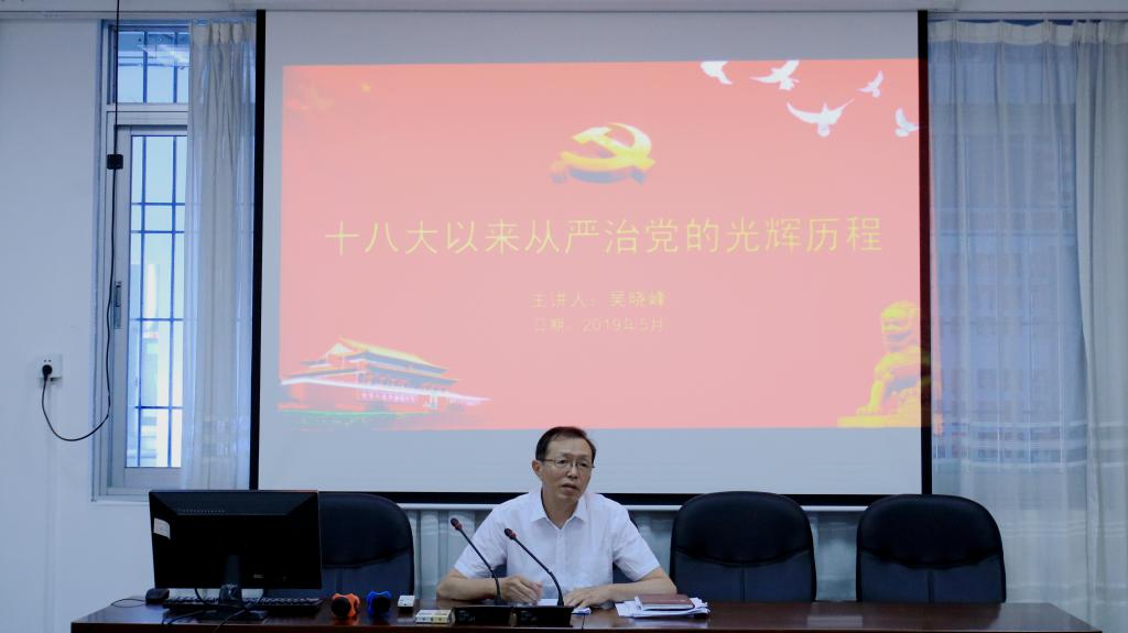 5月30日下午,我院党委书记吴晓峰同志在综合楼中区504给全体在校学生党员开展以“党的十八大以来从严治党的光辉历程”为主题的党课。