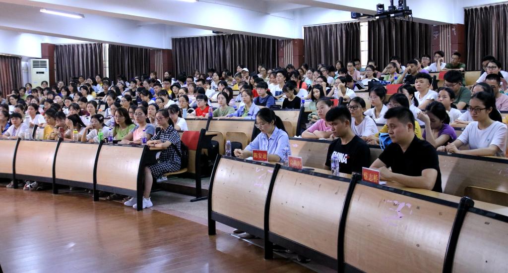 典礼由yl88858永利官网党委副书记陈慧燕老师主持。yl88858永利官网党委书记吴晓峰研究员、院长吴玉玲教授、党委副书记陈慧燕老师、副院长钟惠芸老师、副院长肖仕琼老师、教师代表陈彩虹老师、院团委副书记张啸啸老师、全体辅导员老师以及全体19级新生出席此次典礼。