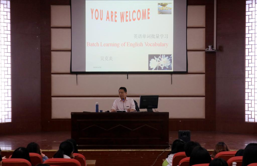 11月28日,我院“老师与你下午茶”活动在东区报告厅拉开帷幕。第一期由吴克炎教授主讲,主题为“Batch Learning of English Vocabulary”。本次讲座吸引了大量在校生前来聆听,现场座无虚席。