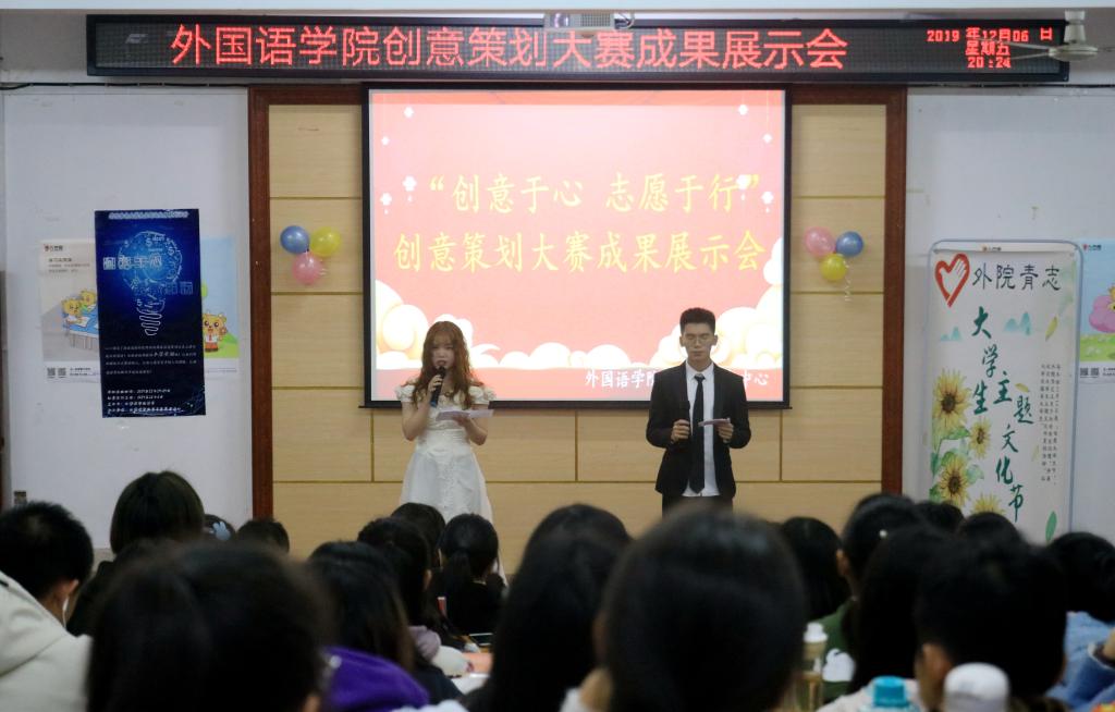 12月6日晚7:30,我院“创意于心,志愿于行”创意策划大赛成果展示在逸夫楼梯教二正式拉开帷幕。院党委书记吴晓峰老师,院党委副书记陈慧燕老师,院团委副书记张啸啸老师,辅导员梁燕辉、蔡志桥、陈安迪、吴颖婕老师,郭露薇老师莅临现场担任评委。