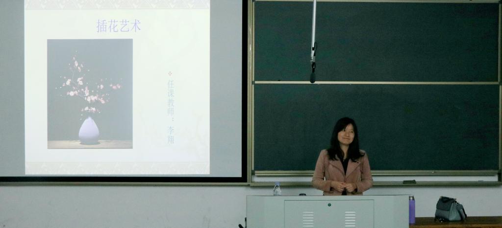 首先,李翔老师向大家介绍了此次讲座的主要内容:花文化简介、插花艺术起源、插花艺术类别、插花花材、插花基本技能、花器的起源与处理、作品鉴赏与品评。