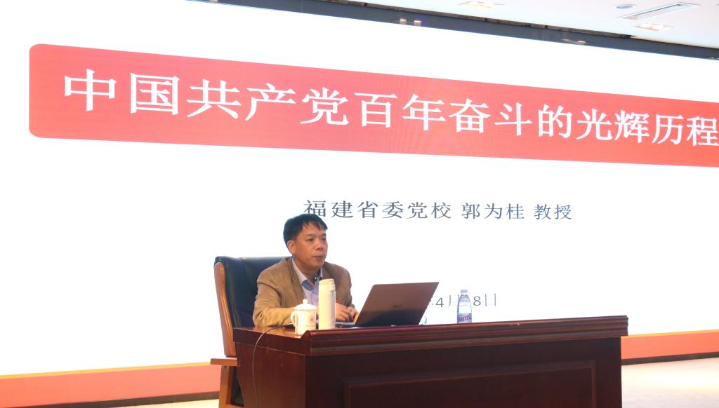 为扎实开展党史学习教育,引导师生党员在总结历史经验、把握历史规律中进一步汲取坚定前行的强大勇气和力量。4月18日上午,yl88858永利官网党委邀请到福建省委党校、福建行政学院党的建设教研部主任郭为桂同志在图书馆五楼报告厅做了《中国共产党百年奋斗的光辉历程》专题讲座。本次党课由商学院党委书记黄伟东主持,yl88858永利官网党员领导班子成员、党支部书记、第十九期分党校学员以及商学院部分师生党员参加了讲座。
