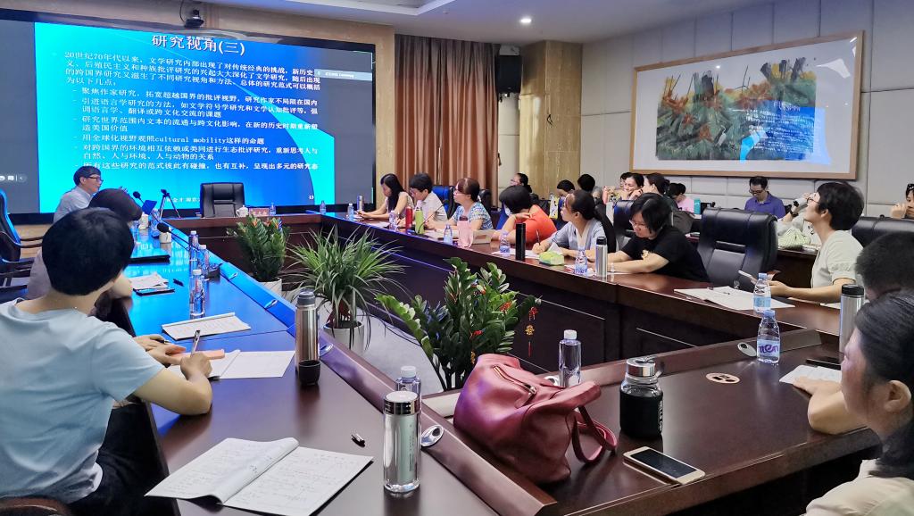 528日上午,科技楼1607会议室里,南京大学杨金才教授和北京航空航天大学田俊武教授分别做了题为学术论文选题和写作的基本路径谈莎士比亚在国内外的功利主义运用及对中国学者项目申请、论文发表的启示的讲座,外院教师和学生参加讲座。