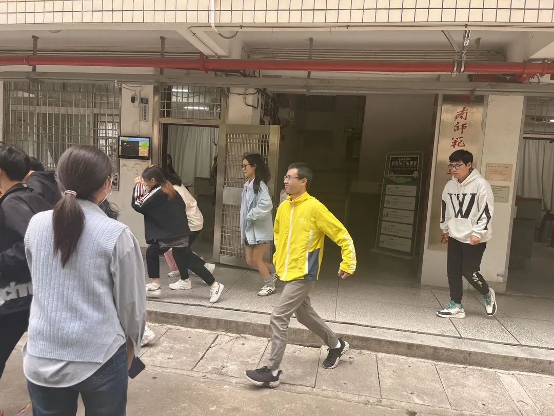 上午9时40分,警报声响,地震逃生演练活动正式开始。伴随着阵阵警报声,在综合楼上课的学生按照既定逃生路线快速有序地撤离“震区”,抵达东区田径场,并排好队列。