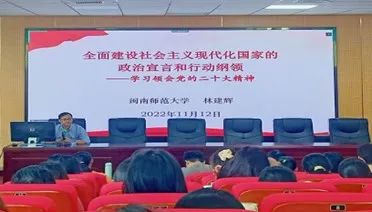 11月12日上午,学校党的二十大精神宣讲团成员林建辉教授在逸夫楼梯教二为我院入党积极分子们带来了“学习领会党的二十大精神”主题党课。