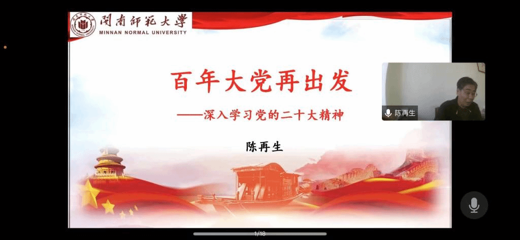 校党的二十大精神宣讲团成员、马克思主义学院院长陈再生教授做了《百年大党再出发》的主题党课,陈教授从“党代会与党的伟大成就”、“百年大党为何再出发”、“百年大党如何再出发”三个方面出发,回顾了历次党代会的历史性意义与取得的四个伟大成就,从过去五年极不平凡的“四个面对”、新时代十年的“三件大事”以及经受的一系列风险挑战考验阐述了过去五年和新时代十年的伟大变革。他指出,从社会发展规律、从党的初心使命、从党的奋斗历程三个方面来看,百年大党再出发都有历史必然性。他围绕党的二十大的主题、新时代新征程中国共产党的历史使命以及中国共产党的中心任务,从战略安排、战略布局、精神状态、工作指针、实现方式、推进动力、实现保障等方面为百年大党如何在出发进行了详尽的阐释。
