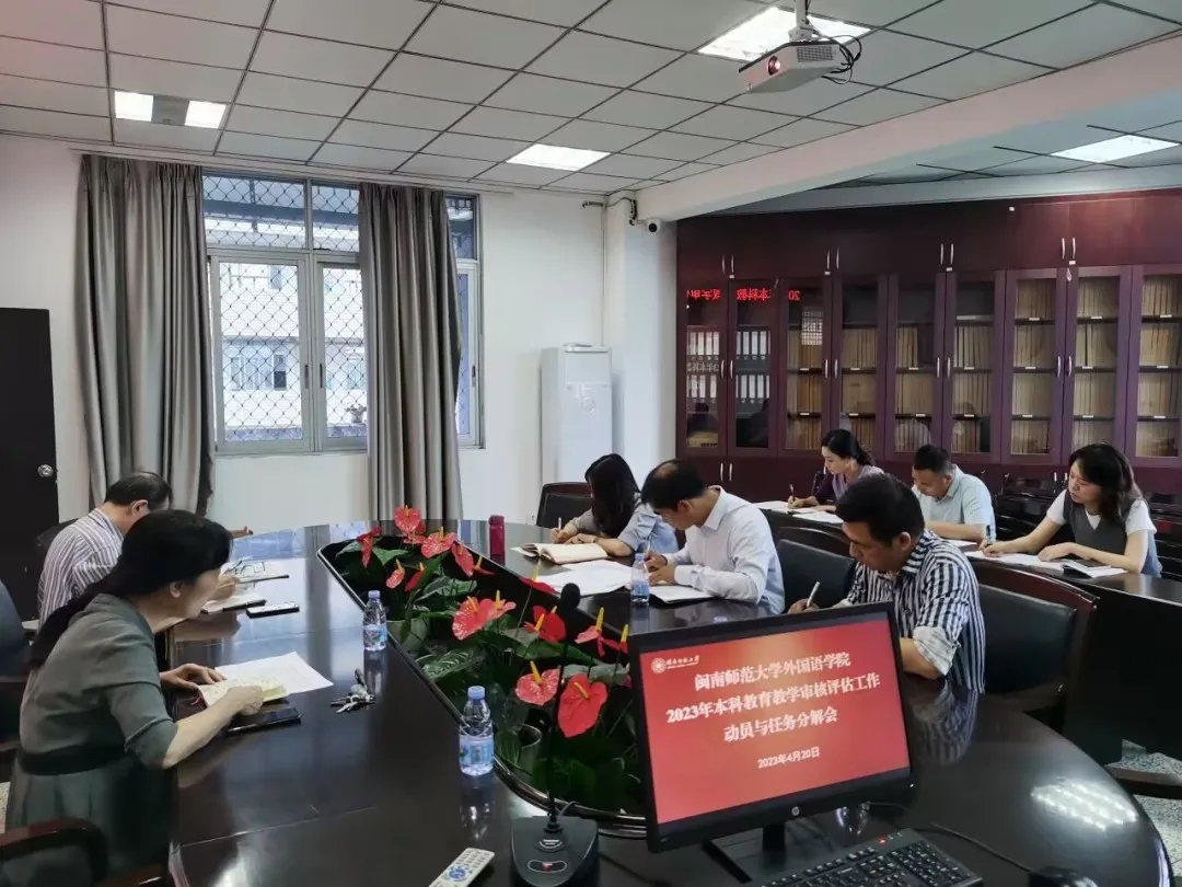 吴玉玲院长对本科教育教学审核评估做了工作动员。她强调,本科教育教学审核评估是对学院立德树人成效的全面评估和检验,务必高度重视,凝心聚力,全力以赴推进评估各项工作有序开展。吴院长传达了学校本科教育教学审核评估动员部署会会议精神、《闽南师范大学本科教育教学审核评估工作方案》文件精神,依据新一轮审核评估新变化,明确学院本次审核评估的指导思想和工作目标,解读七大方面评估指标体系,详细部署学院各个工作专班领导小组构成、各项指标体系具体负责人以及各阶段时间节点、工作任务等,并指出学院要以本轮审核评估工作为契机,推进本科教学和人才培养工作高质量内涵式发展。
