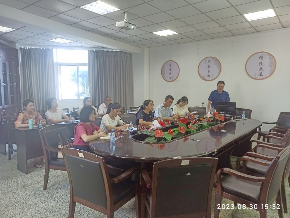 2023年8月30日,校本科教育教学审核评估工作检查组莅临我院进行迎评专项检查,检查组由教务处杨娟娟副处长、陈春华副处长、文学院郑丽霞副教授、 教务处综合科沈坤莲科长和招就处综合科徐欣副科长组成。我院分管教学的肖仕琼副院长、教务科罗鹏兴科长和各系系主任参加检查工作。