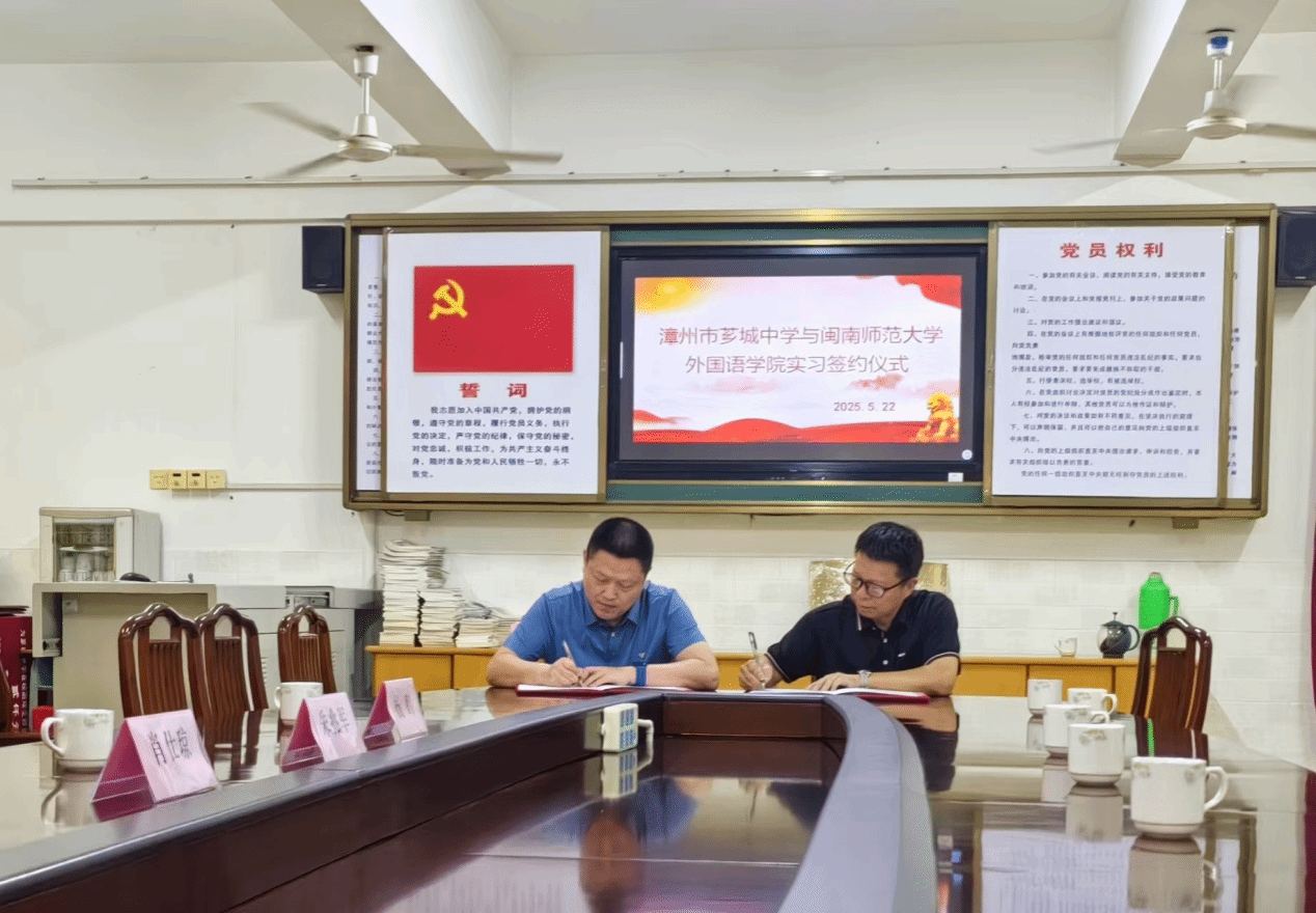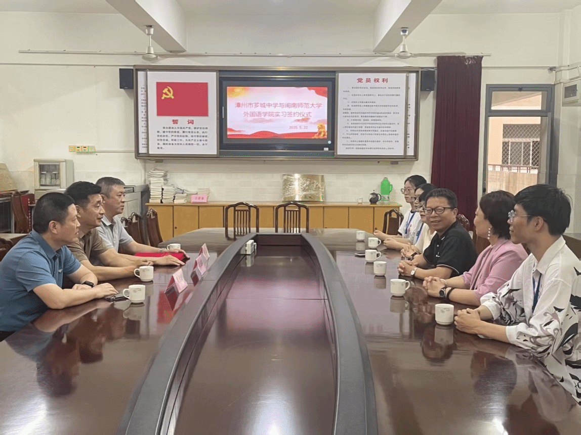 为深化校地协同育人机制,推动师范教育高质量发展,5月22日下午,yl88858永利官网与漳州芗城中学教育实习基地签约授牌仪式在芗城中学成功举行。yl88858永利官网副书记朱兆军、副院长肖仕琼教授、翻译系杨鹏副教授,芗城中学校长杨卫乾、政治处主任陈小妮等出席活动。