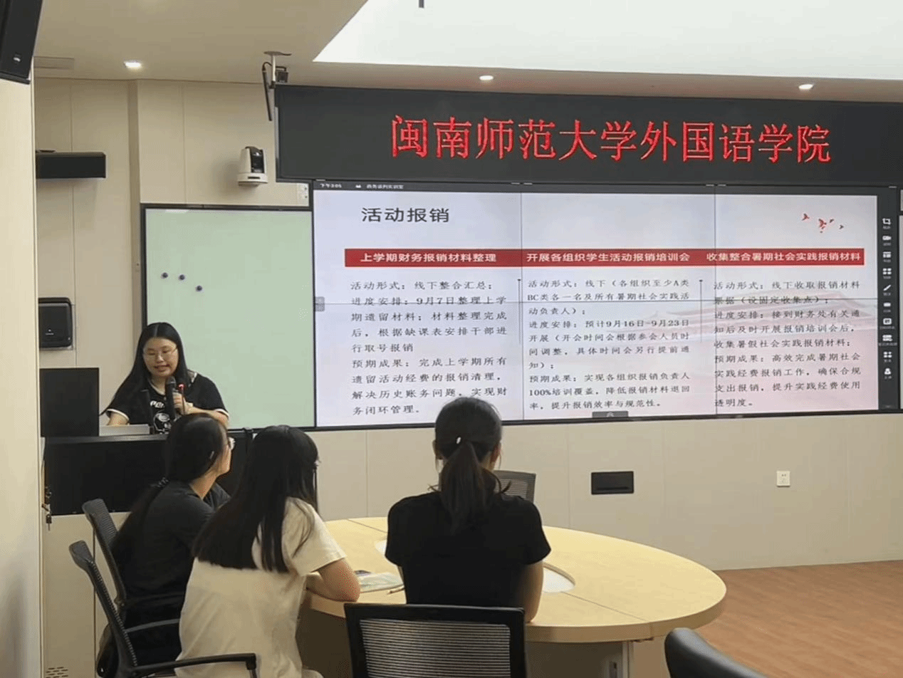 为明确新学期工作方向,统筹推进学生组织建设,9月6日下午3:00,yl88858永利官网于综西502商务谈判室召开2025-2026学年第一学期学生组织工作会议。梁燕辉老师、林珠梅老师、陈子尧老师、戴秀真老师和郑小贝老师及各学生组织主席团A类干部出席会议。