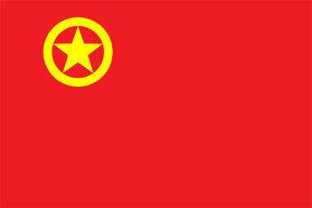 中国共产主义青年团团旗旗面为红色,象征革命胜利;左上角缀黄色五角星,周围环绕黄色圆圈,象征中国青年一代紧密团结在中国共产党周围。