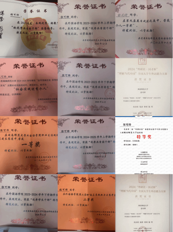12. 2025年1月获评全国大学生英语翻译大赛省一等奖;