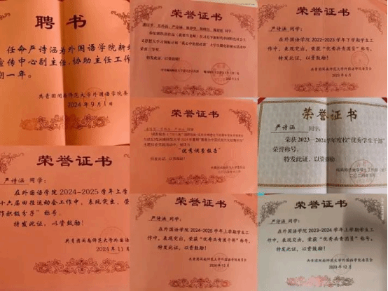 1.2024年5月获评校级“优秀学生干部”称号;