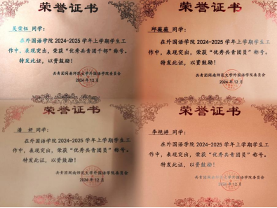 青春向党,步履铿锵;团旗所指,奋斗所向!2024级英语(师范)1班团支部用行动诠释了新时代共青团员的使命担当,从思想淬炼到专业深耕,从文化传承到志愿奉献,每一步都镌刻着拼搏的印记。这份荣耀不仅属于他们,更是全体外院青年的精神坐标。愿这份青春答卷化作前行的号角,激励更多学子以梦为马,勇毅前行,让青春的光芒在服务国家、奉献社会的征程中愈发璀璨!下一期,让我们继续聚焦更多的优秀团支部的风采,看他们尽展青春底色!