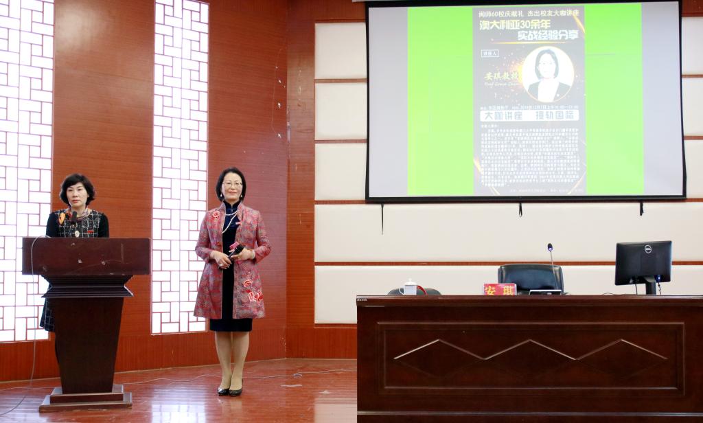 2018年12月7日上午10点闽南师范大学的杰出校友、外文学院的杰出院友安琪教授在东区报告厅圆满成功举办了“澳大利亚30余年实战经验分享”主题讲座。讲座现场座无虚席,到场嘉宾们包括学校和学院的领导们老师们、各不同院系的学生们、校友们,还有不少慕名而来的校外各行各业精英。此次校庆大咖讲座由闽南师范大学校友会主办,校友办、外语学院承办。