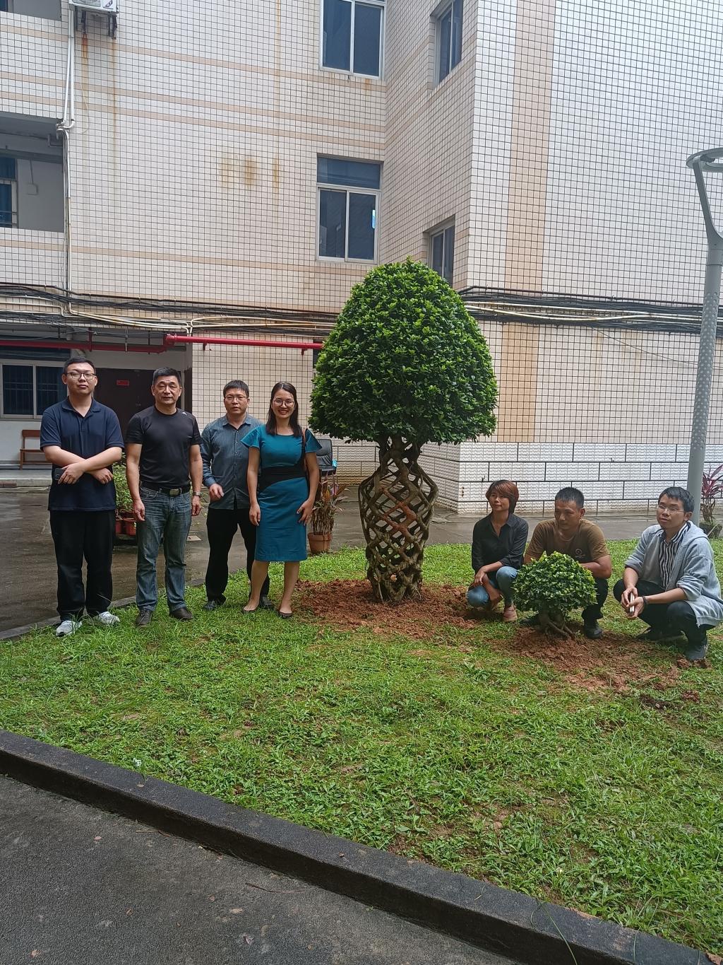 最后,学院领导们一起为捐赠的树木悬挂纪念牌并合影。