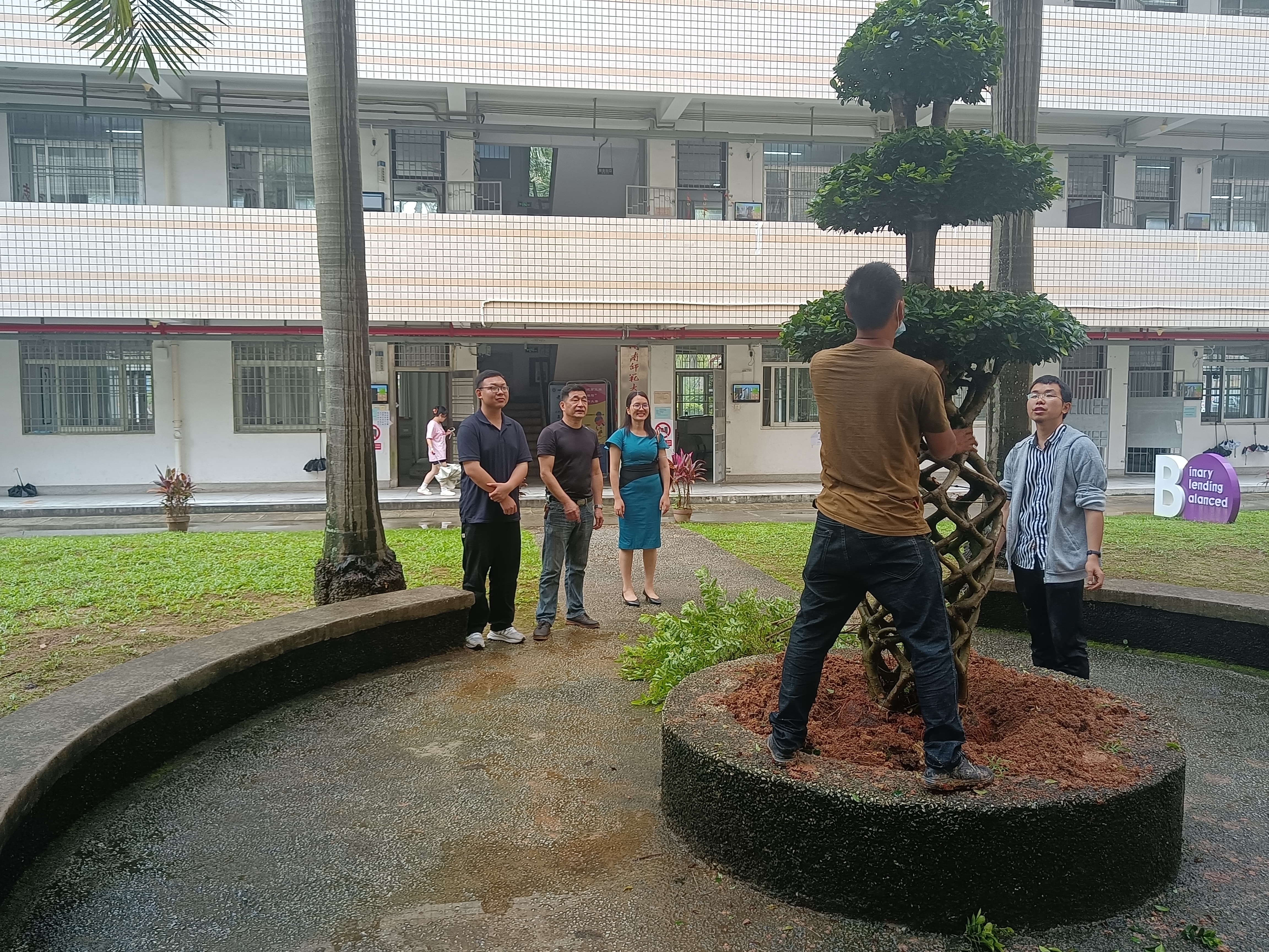 6月12日,2004级商务英语系校友、漳州诺恒园艺农业开发有限公司创始人陈碧娇女士向我校捐赠3株榕树并种植在综合楼下绿地草坪,用捐赠树木的方式,报答母校的培育之恩,为母校增绿添彩。学院校友总会副会长,我院党委副书记朱兆军出席了捐赠仪式,见证寄托着校友深情厚谊的榕树现场种植。
