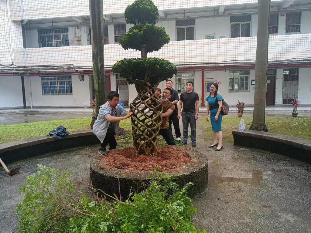 捐赠仪式上,陈碧娇校友代表回忆了自己在校学习时光,感谢母校的教育和培养,祝福学校事业蒸蒸日上,并表示此次向母校捐赠树木的初衷:榕树枝叶茂盛,靠拢生长,象征着团结一心、奋勇前行的精神;榕树具有花瓶造型,蕴含平安之意;树木有大有小且需定时修剪,象征老师带着学生并精心培育学生成长成才。