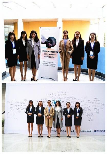 本次大会共设五个委员会,我院代表队成员在英文委员会UNDP中分别为阿塞拜疆、法国、墨西哥、尼泊尔、巴基斯坦国家代表及美联社新闻记者,立足“Achieving No Poverty In Accordance With Sustainable Development Goals(SDGs)”这一议题,围绕“如何实现零饥饿与减少营养不良”、“如何创造体面的工作与维持经济的可持续增长”、“如何建立公共服务与社会保障”等一系列具体议题与其他高校参会代表进行深入探讨和积极磋商。最终、由中国、俄罗斯、法国等国家代表共同拟定的Draft Resolution 1.1 得到大会代表一致通过。我院学生代表在会前认真的学术准备工作,会上表达流利、逻辑清晰的发言,会场外灵活机智的沟通交流,给大会的主席团和其他高校代表留下了深刻的印象,充分地展示了我院青年学子积极进取,自信大方的精神风貌。其中,林玮玲还荣获MPC委员会Honorable Mention(荣誉提名奖)。作为“美联社新闻记者”,她用锋利的笔触、敏锐的思维写出了大量精彩的新闻简讯与社论,在新闻发布会上犀利独特的提问,体现了作为媒体新闻人的睿智与独到深刻的个人见解。