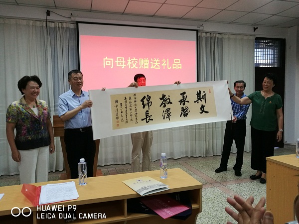 参加本次纪念活动的63级校友们满怀激情回到母校,他们首先重游了芝山老校址,在芝山红楼、十月楼、仰止楼(十月楼、仰止楼为二师院教室、宿舍和语音室)前合影留念,共话当年在母校的青春岁月,细数母校、恩师、同窗的温馨记忆。之后老校友们回到综合楼yl88858永利官网会议室一起参加了座谈。蒋一婷副校长代表母校对校友们回到母校庆祝毕业50周年表示热烈祝贺,蒋副校长指出,斗转星移、时光悠悠,改变不了二师院校友们对母校的深深眷念。福建二师院是母校办学史上光彩夺目的一页,二师院校友们也是母校办学发展史上的先行者和领路人。随后yl88858永利官网院长吴玉玲向校友们介绍了学院在师资队伍、人才培养和教学实践等方面的建设情况,表示学院将秉承前辈们的奋斗精神,继续奋斗,不忘初心。最后1963级校友向母校赠送了由著名书画家、省作协副主席陈章汉题写的《斯文承启 教泽绵长》卷轴,表达了对母校衷心的眷念和感恩。