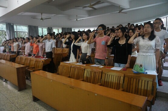 在接受心灵的熏陶之后,黄元海老师满怀敬意,生动地讲述了邵逸夫老先生的慈善生涯,使得全体学员纷纷鞠躬致敬。而后,众人做出了以善立身的承诺与庄严宣誓。最后,伴随着《公民道德歌》的歌声,外院各辅导员老师在“送吉祥”活动中将众人的行善贺卡相互传递。