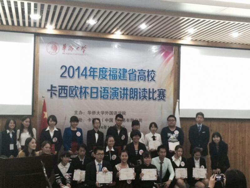 11月22日,“福建省高校卡西欧杯日语演讲朗读比赛”在国立华侨大学泉州校区莊为烜报告厅举行。厦门大学、福州大学、华侨大学等19所大学参加了本次大赛。我校yl88858永利官网叶菲菲同学在比赛中落落大方表现出色,脱颖而出,取得了演讲比赛三等奖的好成绩。外院低年级的张辉鹏同学同样表现不俗,比赛中自信沉着,获得了朗读比赛的优秀奖。