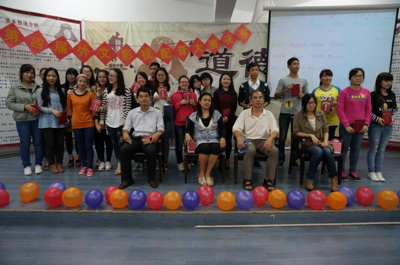 经过此前的初赛、复赛,共有六组选手从来自各院系报名参赛的200多组选手中脱颖而出并进入决赛。决赛共分为两场,第一场为自选-视频配音,第二场为现场抽选-即兴配音。各组选手在做完自我介绍后各施其才,完全融入了自己所扮演的角色中,比赛气氛热烈,互动良好。选手们一展才华后,由评委团和大众评委团评出各奖项得主,外语系的姜悦、张梦媛同学获得本次大赛一等奖,中文系、经济系,管理系代表队分获二、三等奖。本次大赛的举办在锻炼我校学生口语,培养学生团队合作能力的同时,也丰富了学生的课外生活,为学生搭建一个展现自我、实现梦想的舞台。