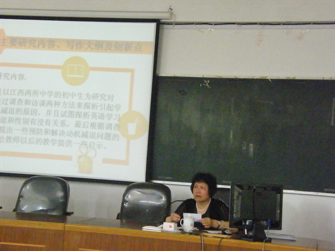 在上午的讲座中,邹申教授面向我系全体研究生开展了“如何做好论文开题”为主题的讲座。邹教授在对硕士论文的性质作了详细阐释的基础上,以一名11级研究生开题报告为例,对开题报告中的各部分进行了分析评价,并对现场的研究生们提出了几点论文写作方面的建议:第一,研究的问题必须是一个值得研究的、有意义的问题。第二,检索文献时应注重国内学者的观点。第三,做实证研究必须把研究过程表述清楚才能更有说服力。最后,邹申教授还就外语系全体研究生如何论文选题和做好开题报告进行了深入、袒城、热烈的交流。