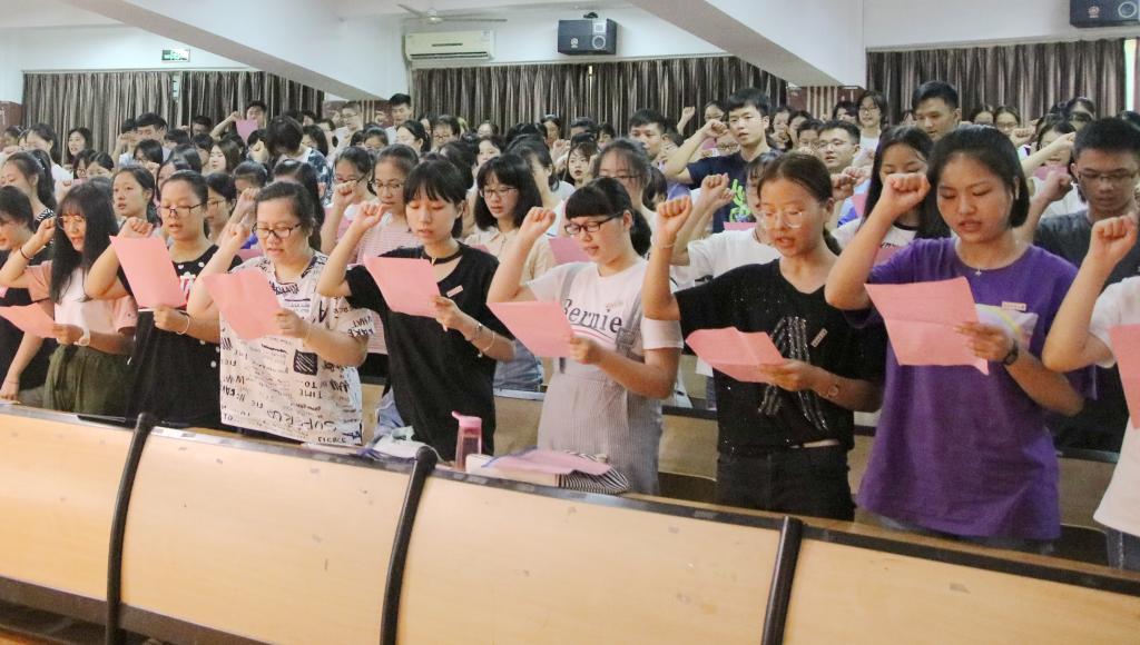 9月14日下午,我院在博文西区楼梯二教室举行2018级新生开学典礼。学院党委书记黄伟东、院长吴玉玲、副院长苏建华,党委副书记陈慧燕、91级优秀校友吴云开,教师代表李金梅及新生辅导员老师出席典礼。典礼由学院团委书记项梅老师主持。