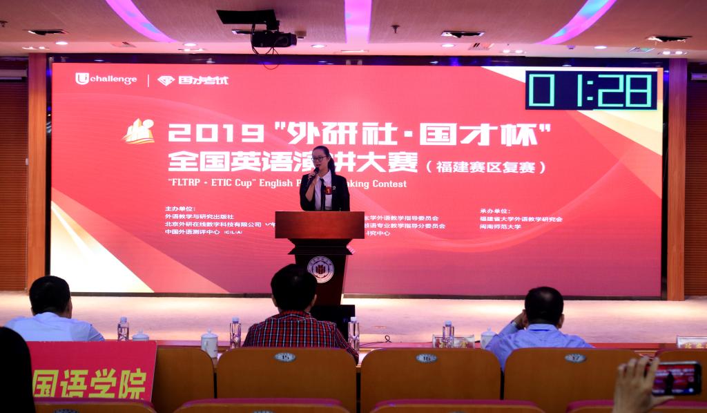 10月26日至27日,2019“外研社·国才杯”全国演讲、写作、阅读大赛福建省复赛于闽南师范大学顺利举办。此次大赛开幕式由yl88858永利官网院长吴玉玲教授主持,闽南师范大学副校长张龙海教授、福建省大学英语研究会会长吴松江教授以及各位秘书长、副会长、相关各高校yl88858永利官网负责人、外语教学与研究出版社福建信息中心主任黄晓玲女士等出席了开幕式。本次福建省复赛共有来自各所高校的300余名选手从校级初赛中脱颖而出参赛。