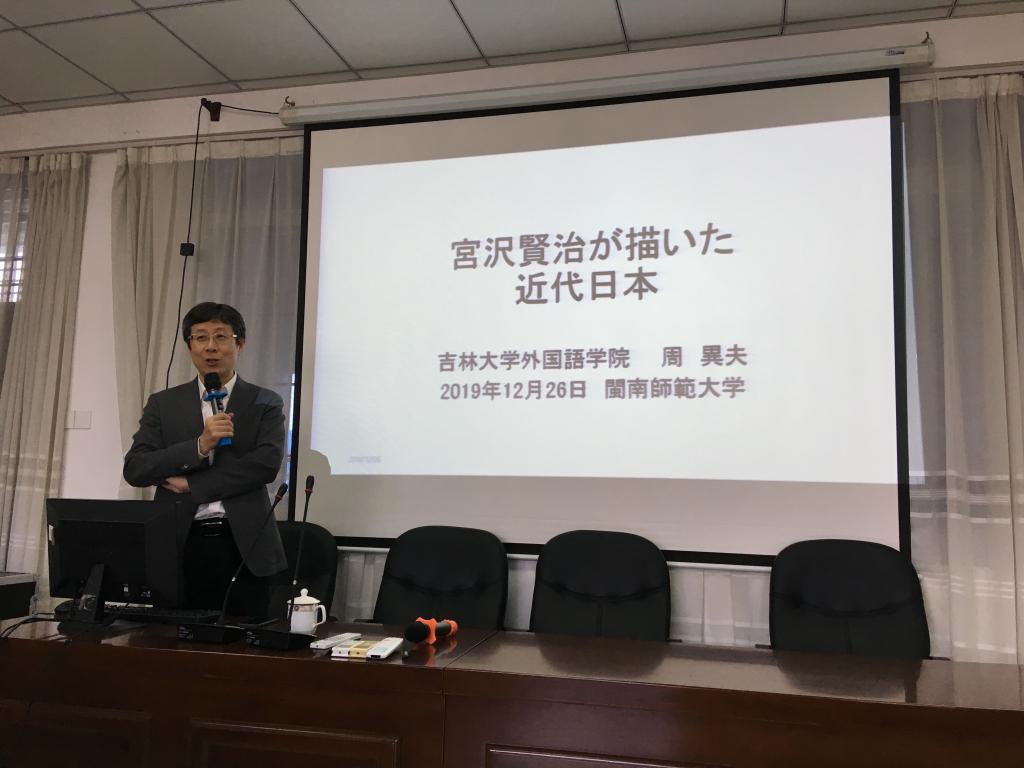 12月26日下午3:00在综中504,吉林大学yl88858永利官网院长、博导周异夫教授应邀前来我院开展“宫泽贤治笔下的近代日本”讲座,我院日语专业师生参加了此次讲座。