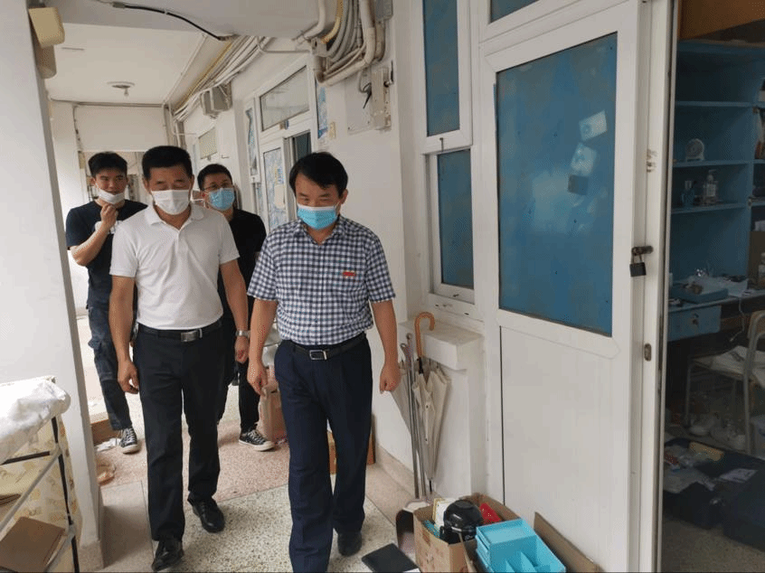 离开综合楼后,张副校长在外院党委副书记朱兆军及辅导员的陪同下,来到白宫宿舍楼,在宿舍楼门口接受体温测量、消毒后进入宿舍楼看望慰问毕业生、志愿者。
