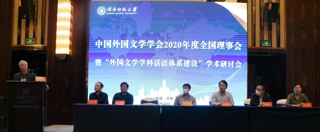 10月30日至11月2日,由中国外国文学学会主办,闽南师范大学承办的中国外国文学学会2020年度全国理事会暨“外国文学学科话语体系建设”学术研讨会在我校举办。来自中国社会科学院、清华大学、复旦大学、中国人民大学、浙江大学、上海外国语大学等全国30多所高校、科研院所和出版单位的80多位专家学者,围绕“外国文学学科话语体系建设”这一学科方向性主题进行深入探讨。