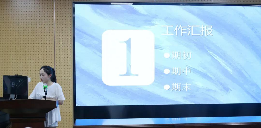 会议开始,各部门部长针对本学期推进的工作进行了总结性工作汇报,主要围绕部门主要职能介绍、部门工作成果展示、部门工作情况反思三个方面进行说明。